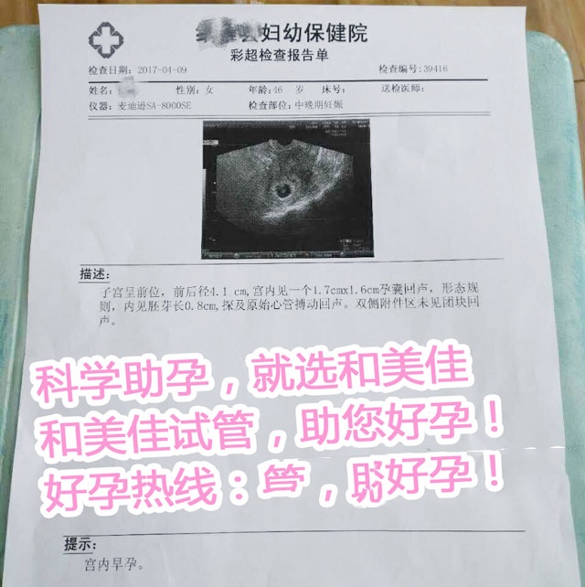 46岁广东X女士移植XY囊胚成功妊娠